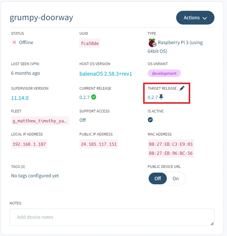 By default, all devices track the fleet release. However, you may wish to run a different release on select devices, for example, a development device or when performing a canary deployment.